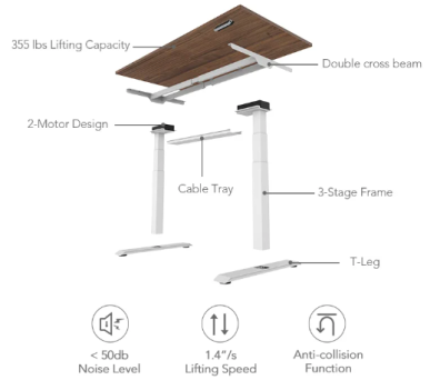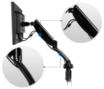 In addition to a suspended display that opens up your desktop, the mount includes a cable management system that organizes and hides your wires.