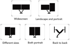 Place your displays side-by-side, spaced evenly apart, back-to-back, top-to-bottom or anywhere in between. The monitor mount also allows rotation from landscape to portrait orientation for viewing.